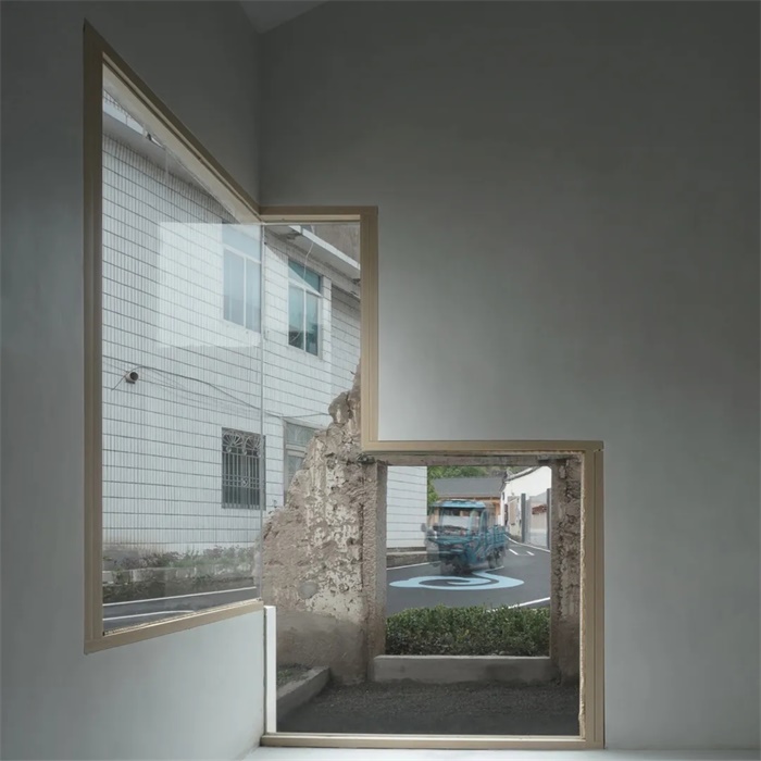 王户村位于山区,地质土壤肥沃,农产品丰富。现状的土墙就是村民以前用来种蘑菇的泥土房遗址。随着现代科技的发展,农村生产力缺失,曾经的生产记忆逐渐被淘汰甚至遗忘。遗落的历史碎片是时间的见证,土墙上遗留下曾经的窗口,门洞,让人可以联想到曾经的使用方式。