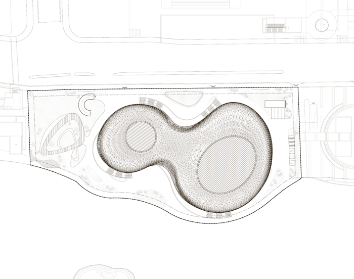 为了呼应北侧的城市界面与南侧的景观界面,大剧院用柔性舒展的形态随城市和金沙湖起伏舞动,其透射着热烈艺术氛围的镂空表皮,界定出面向金沙湖的滨水空间和沿金沙大道的前广场。同时前广场和滨水空间通过架空景观通廊贯通,平台、环廊、斜坡穿插游走于空灵的结构内外,与广场及湖岸连通、整合在一起。它们吸引着人们流连忘返,增强了金沙湖湖区的场所感和活力。