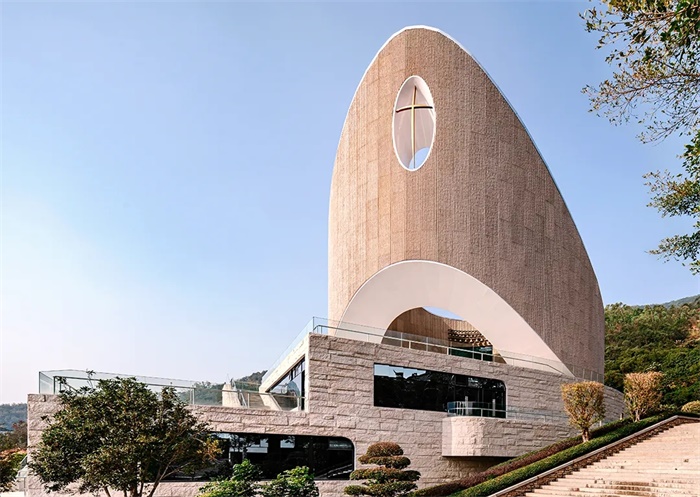 由此,建筑创造了一种沉浸式的体验:登上平台做礼拜的人们会感觉仿佛被天堂所拥抱。建筑的顶端平台是一个向天空敞开的圆形中庭,是基督徒进入“方舟”核心空间之前的会合处。