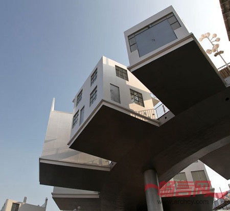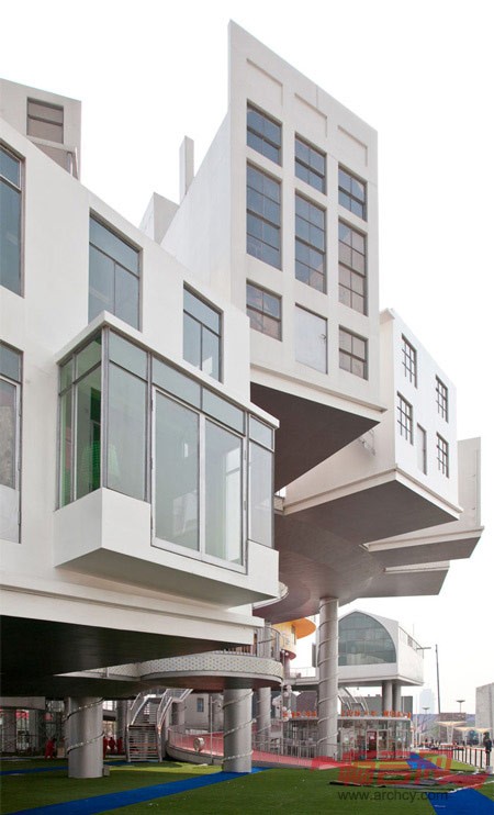 26座风格各异的小型展厅沿着走道巧妙排列,使“快乐街”看起来像是一个悬浮的过山车。