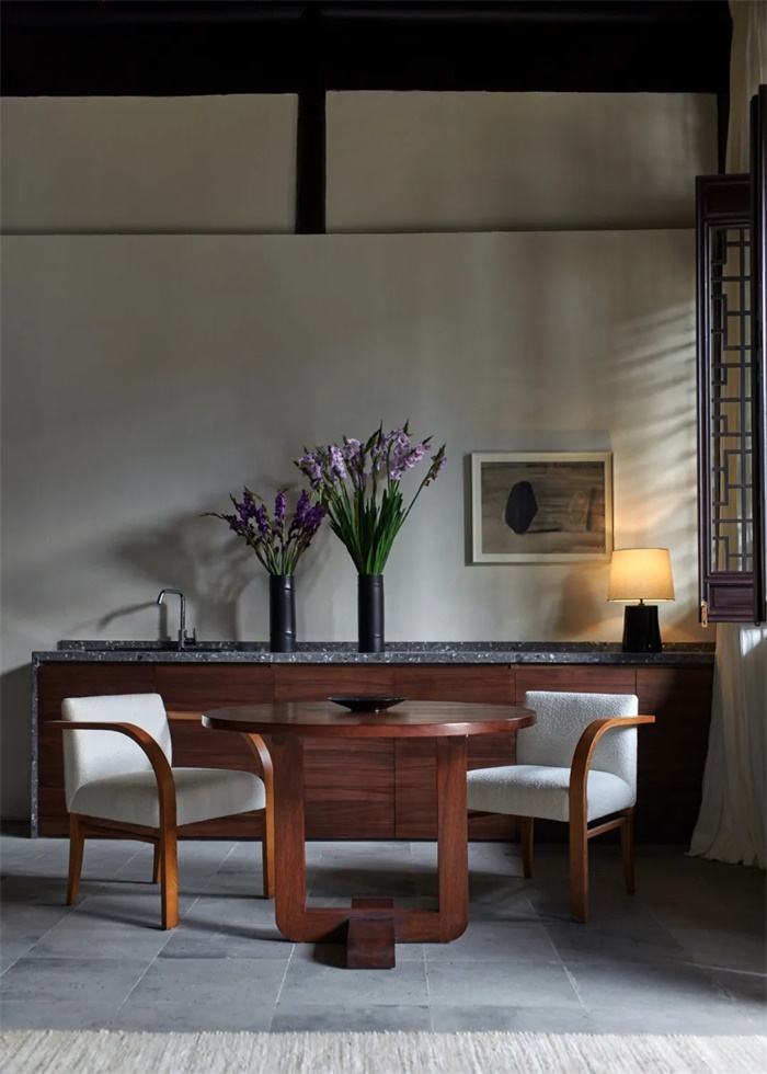综合各方面因素,如何在保护规则的前提下充分利用现有的室内空间,争取最多的客房数,以及最大化利用庭院景观为客房争取美景并建立足够的私密性成为设计最重要的策略。在流线布局上,首先废除了原有东侧建筑的内部通道,让去客房的人流均通过园林,先进入南、北、中三个院子,再由院子内的回廊进入客房,就自然而然地将园林和庭院美景带入客房体验中,这就避免了让庭院只是作为被视觉欣赏的空间来对待。
