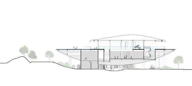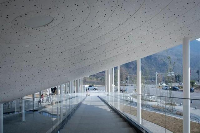 “卧云台”是集文化展示、科普教育、情景体验等一体的公共建筑。底层整体架空形成开放的公共场所,中部及顶部为文化展示和休闲体验空间,这里有云上的山水,也有云下的烟火。