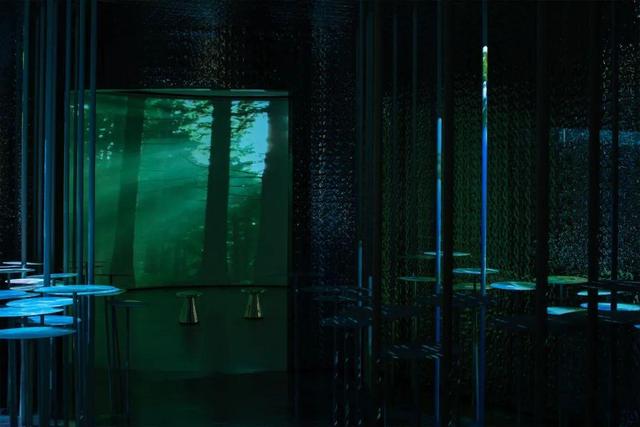 并通过主入口的动态流星、下沉广场的恒星与星空之间形成显与隐、内与外的对比关系,强化整个底部空间夜晚如梦如幻的意境。