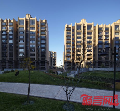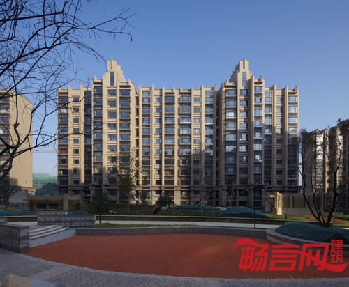 本方案立面形象统一采用Art-Deco风格。Art-Deco风格起源于法国巴黎,盛行于美国纽约。其产生是在古典主义走向现代主义的阶段。上海滩优美端庄、历久弥新的经典建筑就是Art-Deco风格的完美诠释。它要求很复杂的手工技术完成它的表面装饰,所以说Art-Deco是一种很贵族化的风格。在项目立面设计中采用这种风格,强调竖向线条的连贯性,和横向线条的丰富性,使建筑呈现高挑匀称的飘逸风格。同时强调建筑顶部装饰处理,以统一的顶部建筑符号突出社区形象的整体性。外墙采用咖啡色及浅黄色质感涂料,强调线条细节比例,有效控制成本并保证建筑外观效果。