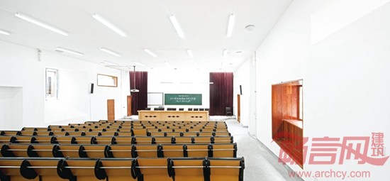 校园中原有的两棵大树被保留,一棵将近20m的皂角树成为正对核心庭院和大台阶的景观,大台阶既是联系教学楼和操场及食堂的通路,又是多种活动的场所,台阶上可以游戏、读书、集体照相、看比赛等。通往操场的街巷空间一侧的阶梯教室墙面上的窗洞通过充分利用墙厚而处理成凹入的“儿童家具”,可容纳很多儿童集体游戏活动,使得这一空间并非仅仅是通过性的。这些错落的窗洞在室内则形成了丰富的光影效果。