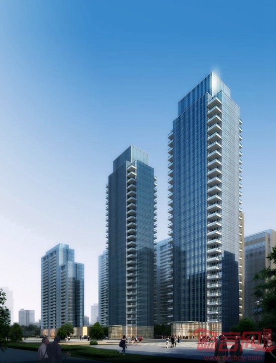 通过超高层塔楼加强区域形象,提升项目价值。整体空间布局与城市肌理相契合,中央商务公园与居住区的景观绿化共同构成了南北贯通的脉络轴线。