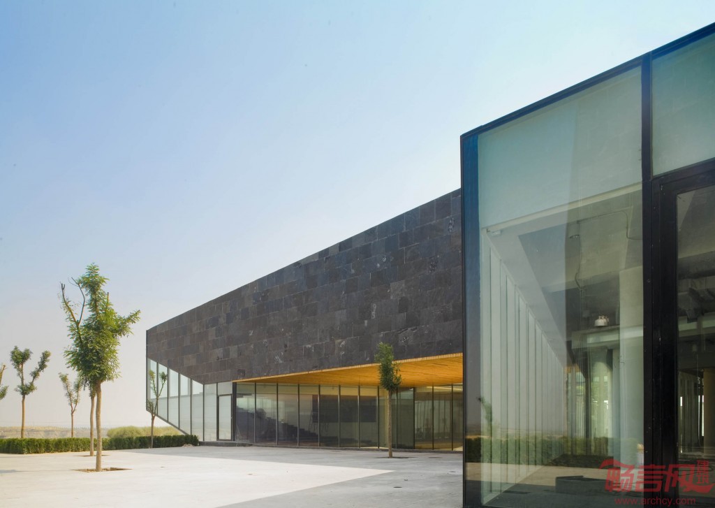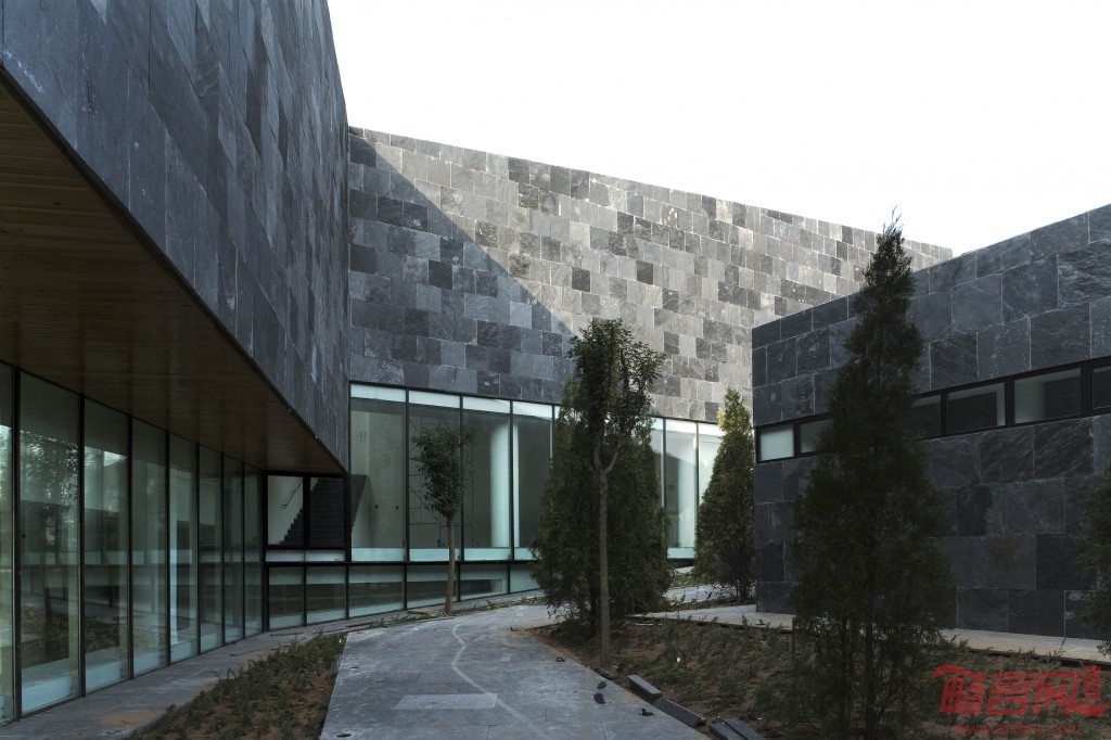 沿路结合景观,空间和地势,或以尽端点式玻璃幕远眺水库,或以侧墙连续玻璃引入院落风景,或以顶部开窗围合展览内容。