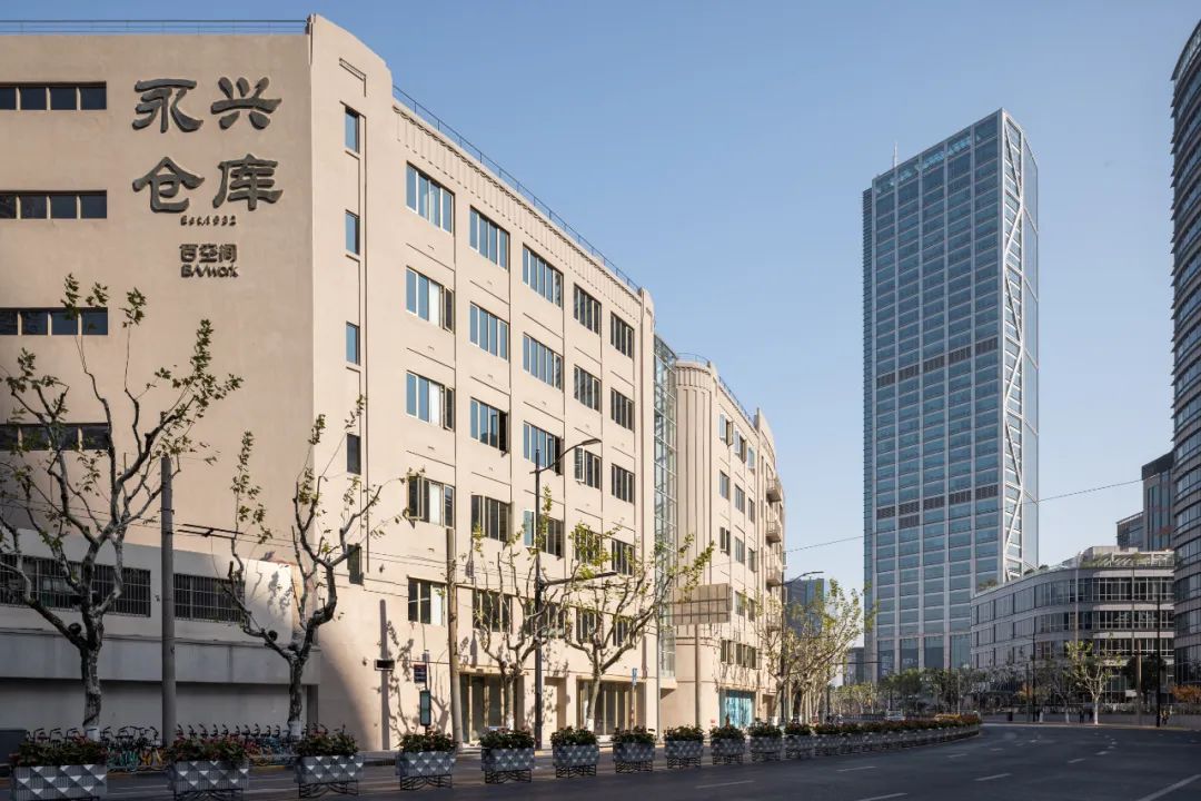 仓库改造修缮后,基本维持现有功能,主楼及副楼在一层连通使用,作为零售、餐饮、停车及办公大堂空间,二层及以上的空间由主、副楼独立使用,均为办公空间。建筑东、西两侧均紧邻既有建筑。由于场地条件受限,设计在维持原双通廊平面格局特征的基础上,合理划分商业、办公、停车、服务等功能空间及出入口,并结合楼梯、电梯的现状组织竖向交通流线,尽可能地减少其对历史建筑的影响,同时满足使用需求