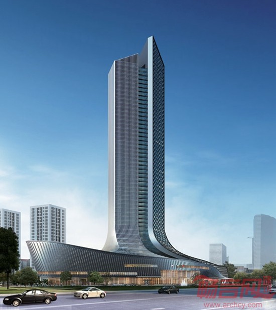 作为西北地区第一高楼,宁夏亘元国际中心大厦的地标位置毋庸置疑。222米高的建筑体量被分成两个部分,建筑形体挺拔有力,裙房由主体向两侧自然延伸。正立面、背立面的概念被弱化,从任何角度看,亘元国际中心大厦都是一个统一的整体。