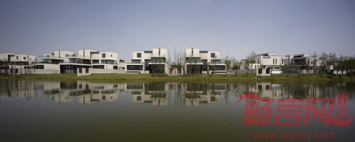本案将街巷空间作为规划核心来设计,其形,其质依附在南北向贯穿全岛的主要道路上。街巷空间节奏形成了古典街巷的四部曲:“起”、“承”、“转”、“合”。首先是由路桥入岛的第一眼印象,现代风格会所配合入口处的中式景观展现了现代高品质的建筑融合着江南水乡的意韵,此为“起”;其次是前行之“承”,进入街巷空间,由各种院墙绿篱等建筑元素围合的尺度亲切的街巷空间承接着本设计的主题;继续前行,前方豁然开朗,打开的大尺度空间与之前的序列相比,一收一放,此为“转”;经过小广场,街巷空间再次收拢,行至湖边,湖景迎面而至,此为“合”。