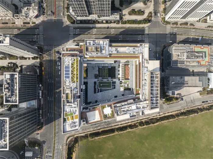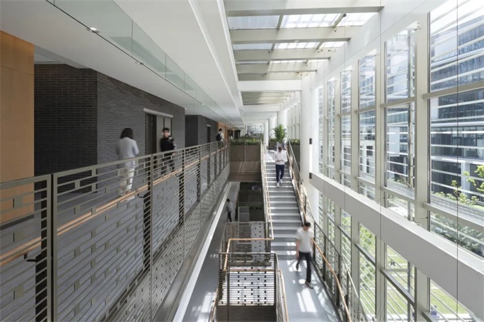受到欧式修道院以及中国园林的启发,校园内部庭院和外部立面的鲜明对比体现了跨文化校园景观的基本概念。这种体量布局方式将建筑物细分为不同的块状区,通过楼层间的前厅和灵活的流通空间相连。校园规划并没有采用独立的分区方式(这会导致形成“孤立的”学术社区),而是采用竖向堆叠布局,从而形成了横跨整个校园的教学、研究、文化和教职工办公空间。