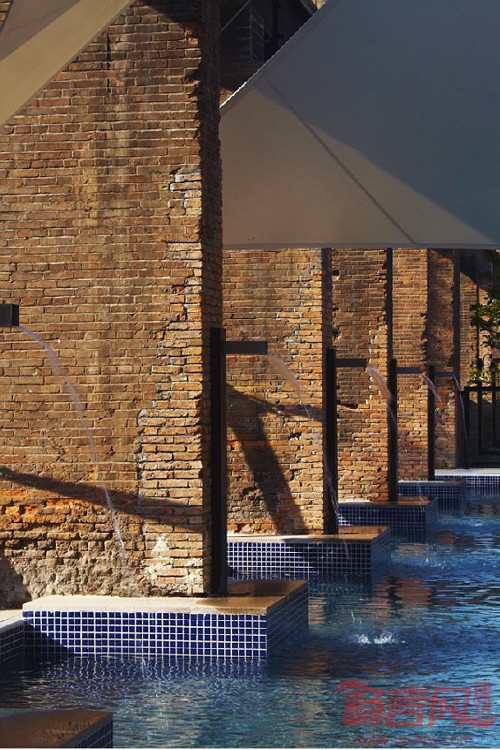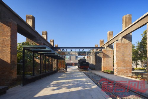 原先的大厂房体量巨大,完全保留会产生很大的压抑感,最终决定移除大厂房的旧顶及侧墙,保留了作为结构的大柱廊,减轻了对实现的影响。再结合厂区内的铁轨,吊车,炼钢炉等。既产生了强烈的历史厚重感,又保留厂区空间连续性。曾经巨大的吊装车被翻新,刷漆,留存;在铁轨的两旁,有摇曳的竹子,圆滑的鹅软石,等车的月台,迷宫树阵,儿童游乐场;而铁轨尽头则是一处极富热带风情的白色张拉膜遮盖下的泳池。整个展区以"留旧创新"作品展示为线索,给人以独特的空间体验。与这些时尚元素相伴的是裸露的厂房骨架,略显斑驳的红色砖墙,散发出经年的质朴美感的老照片,新旧材质对比之下,一个散发出时尚气息又极具历史韵味的建筑空间雀跃而生。