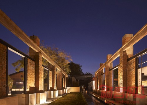 项目入口区原有建筑进行重点设计,将建筑桁架上生成,深色木百叶门,铜网,玫瑰钛框屏风,酒架等现代构件有机布局。并结合玻璃幕,金属百叶,金属穿孔板等能够强化空间的现代建筑元素。以一个整体的,富于细节的低层建筑群落让所有居民在进入本小区的一刹那享受久违了的休闲,宁静的居住氛围。