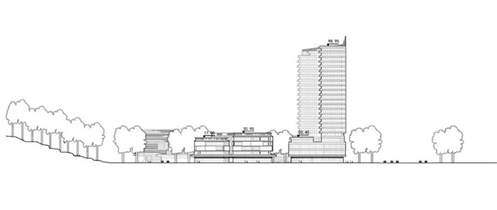 立足于上饶地域文化和历史文脉以及中国自古以来“人与自然和谐共生”的哲学思想,设计巧妙地利用场地内原有地形高差,结合建筑退台、庭院创造出丰富的内外空间和界面,缔造出多元的、有品质的、生态可持续发展的城市名片。