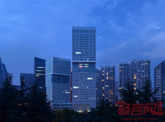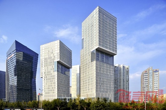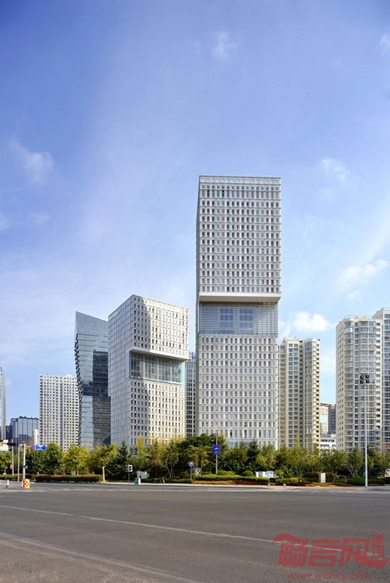 主体建筑由两栋造型规则简洁的塔楼组成,塔楼之间由具有优美曲线的裙房相连,局部楼层之间设挑空共享空间。整个建筑结构清晰,造型独特,空间富于变化,极具城市地标性。