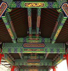 卷棚歇山的屋顶层层叠叠,错落有致。各个富有传统气质的单体通过6m×6m的玻璃通廊彼此联系起来,形成完整的院落,既保证各个区域通达的顺畅,又为建筑造型带来全新的感受,让客人透过现代的建筑材料欣赏到具有传统建筑美感的细部。鳞次栉比的屋顶与规整有序的庭院共同形成雍容典雅,气度非凡的建筑群落。