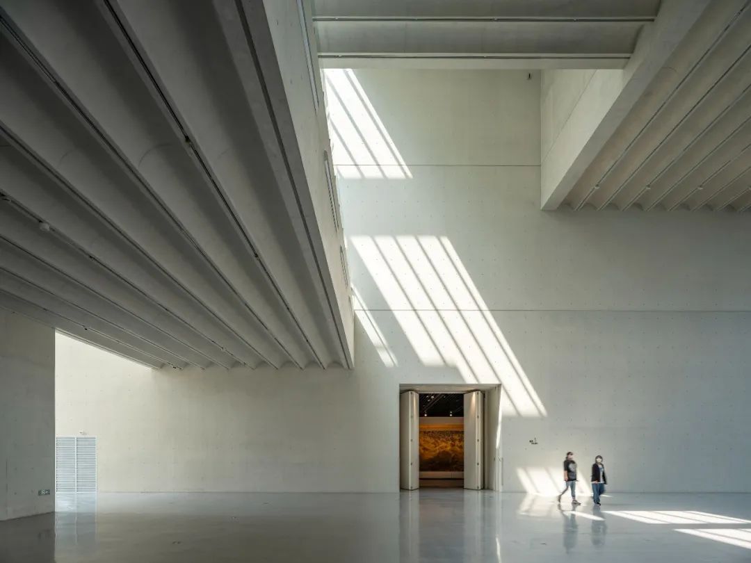 太仓美术馆基地毗邻太仓市新城中心,场地平坦规整,周围是已经建造成形的各类居住、教育、商办以及公共绿地。在这块中心区仅存的空地中,建筑师面临的核心问题是如何塑造与太仓传统文脉相承的当代美术馆空间。当代艺术空间的尺度日趋宏大,与传统文人画的创作时空是一对显在的矛盾。在双向的思考中,我们尝试通过对具身性的园林空间尺度的抽取与重构,建立一种当代语境下的园林空间秩序,营造与传统园林空间和而不同的空间氛围。