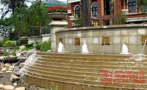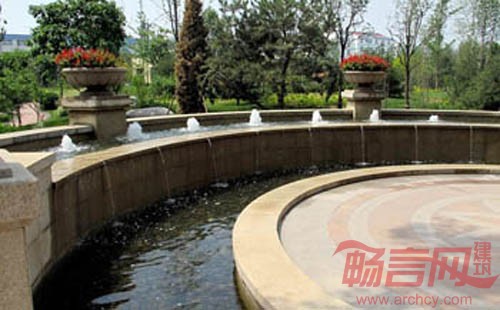 山语城售楼处现状存在着2米的高差,设计师通过巧妙的叠水水景设计以及景观挡墙的处理,即合理的应用了高差又使得景观产生了更多的空间和趣味性。