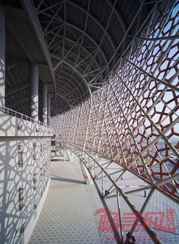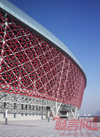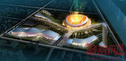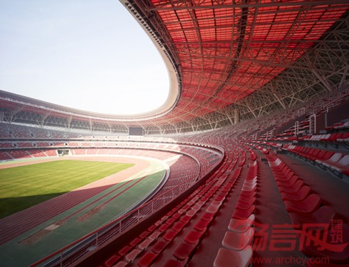 主体育场的形象取大鼓之形、灯笼之构、剪纸之饰为创意元素,使民族特色、地域特征与时代精神在其中得到有机融合和贴切体现。场馆外形如大鼓,浑圆敦厚,具有淳朴内敛的气质,符合山西人的性格特点,寓意深刻、大气磅礴。将灯笼的编织手法巧妙地运用到主体育场的幕墙结构体系(主体钢结构)中,同时提取山西地方剪纸艺术的图案加以抽象化运用,以'中国红'为主色调,以透明阳光板来模拟剪纸的图底关系,通过随机组合来形成表皮肌理。建成之后,阳光透过透明阳光板后,在体育场中将留下形似剪纸的淡淡阴影。这样的设计将山西丰富的文化内蕴延伸到现代建筑中,显得生动灵活,妙趣盎然,富有韵律。而体育馆、游泳馆和自行车馆三馆集中起来,形式上更为大气,在占地上也更加节约。