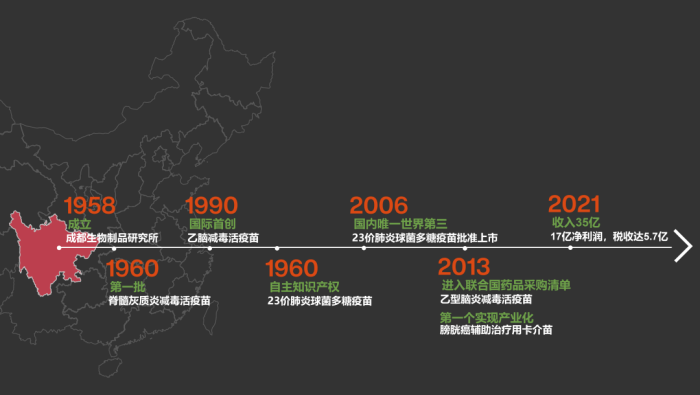 成都生物制品研究所是中国重要的生物制品生产、研发、人才基地之一。长期致力于医学微生物学、免疫学和基因工程的研究,研发与生产各类预防和治疗用生物制品、诊断制品、基因重组药物等,为国家扩大免疫规划(EPI)提供安全有效的疫苗,为预防传染性疾病做出了重要贡献。