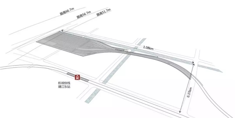 基地规划面积35公顷,北侧为规划中的机场快线延伸段靖江东站。