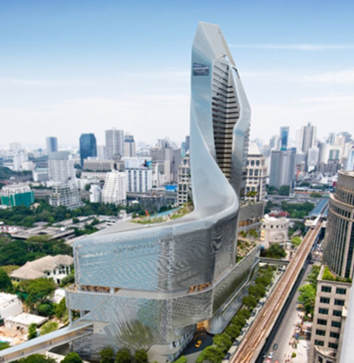 Amanda Levete Architects建筑事务所设计的中央大使大厦将于明年二月份破土动工。该项目坐落在曼谷市主要的商业区,总面积为150万平方英尺,包括7层豪华商铺基座和30层的五星级酒店大厦,建筑外观呈曲形。建筑外观非常壮观,曲线的建筑体直入云霄,成为该地区一个标志。建筑有两个垂直光井,因此内部光线充足。建筑内还有梯台和垂直花园。