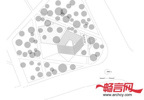 东来书店位于嘉定新城紫气东来公园的东北角,东、北两侧靠近城市道路,西南方面向公园。这座公共建筑处于城市和公园之间,我们的策略是用院落的方式呈现建筑与城市、建筑与自然的关系。墙语言是策略的执行者,它在东北方形成前院、在西南方形成后院,在中部盘绕而起,围成了建筑的室内空间、中庭和露台。我们设想书店的环境是一体的,室内空间和室外庭院呈现出一种平等的、相融的关系,引导人们在连续互通但意味不同的空间里看书、休息和漫步。