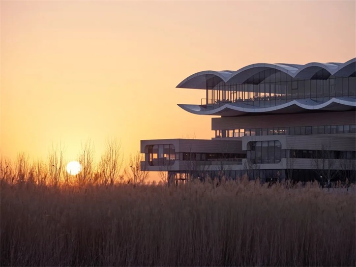 中国民航大学宁河校区图书馆位于天津市宁河区,是新校园一期工程的核心建筑。图书馆高23.7m,总建筑面积约40000平方米(其中地上建筑面积约26000平方米,地下建筑面积14000平方米)。