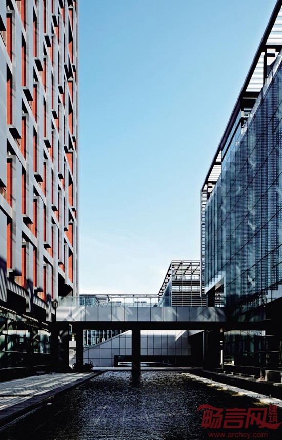 从水面、院落、平台、中庭等层面打造共享的生态型、景观型办公环境。