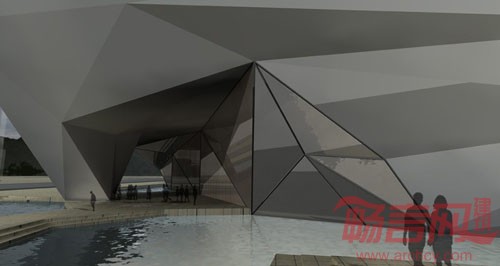 本工程基地位于温岭城市新区的核心地段,周围多为商业区、高端住宅和酒店,是市民活动的中心区域。作为这片区域唯一的文化类建筑,这个博物馆除了展览功能外 承担了更多的公共文化活动的功能。建筑设计从城市角度出发,对场所做出了积极的回应,将主体架空,留出大量公共活动的空间,为温岭新城区提供了一个市民文 化活动的中心。温岭的石文化由来已久,特殊的地质条件,在温岭存在大量的优质石材,当地人民利用石材进行采石,留下大量的硐天,同时,石屋、石街、石亭、 石家具等充满温岭民间,造就了突出的温岭石文化。建筑形式如一块灵动的巨石,落在双桥河边,内部空间又如温岭著名景点长屿硐天一般,流动交错。巨石向北展 开巨大的洞口,供参观者感受双桥河沿岸美景。形式本身不仅与当地文化结合,更富时代感,极具动势的体量具有强烈的视觉冲击力。从南边的广场,穿过建筑下方 到达双桥河岸,走亲水栈道回望建筑,倒影斑驳,灵动而纯净。