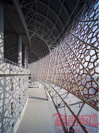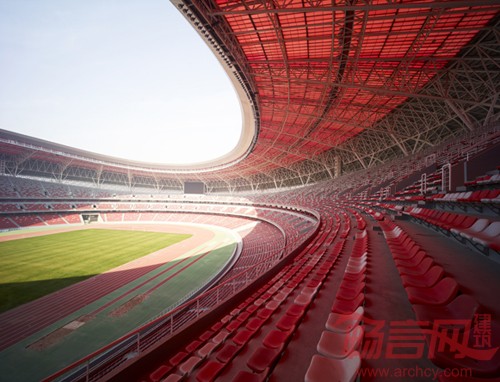 山西体育中心占地1238亩,总投资为16亿元,包括60000座的主体育场、8000座的主体育馆、3000座的游泳跳水馆、1500座的自行车馆和综合训练馆等。主体育场在东北方,朝向城市中心。体育场西侧为自行车馆、游泳跳水馆,东南侧为综合训练馆,分别以流畅的曲线为基本造型,列于体育场两侧。为与主题相呼应,体育场西北侧的运动员训练馆和公寓以及通往体育场二层的坡道也是曲线造型。在场地东南角预留了国际体育交流中心和商业用房的规划用地,使其与主场馆区既能联系又相对独立,有利于人流的迅速疏散。
