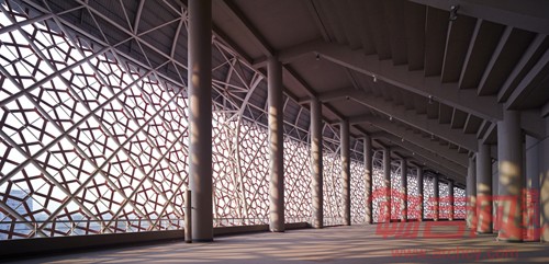 主体育场的形象取大鼓之形、灯笼之构、剪纸之饰为创意元素,使民族特色、地域特征与时代精神在其中得到有机融合和贴切体现。场馆外形如大鼓,浑圆敦厚,具有淳朴内敛的气质,符合山西人的性格特点,寓意深刻、大气磅礴。将灯笼的编织手法巧妙地运用到主体育场的幕墙结构体系(主体钢结构)中,同时提取山西地方剪纸艺术的图案加以抽象化运用,以'中国红'为主色调,以透明阳光板来模拟剪纸的图底关系,通过随机组合来形成表皮肌理。建成之后,阳光透过透明阳光板后,在体育场中将留下形似剪纸的淡淡阴影。这样的设计将山西丰富的文化内蕴延伸到现代建筑中,显得生动灵活,妙趣盎然,富有韵律。而体育馆、游泳馆和自行车馆三馆集中起来,形式上更为大气,在占地上也更加节约。山西体育中心整体设计汲取了山西建筑地方文化特色,凝练了山西的文化符号,并使之与现代建筑融为一体。单体建筑线条清晰明快,结构简洁流畅,气势宏伟壮观,个性鲜明,体现出体育的速度和力度,体现出生命与自然环境的和谐统一。