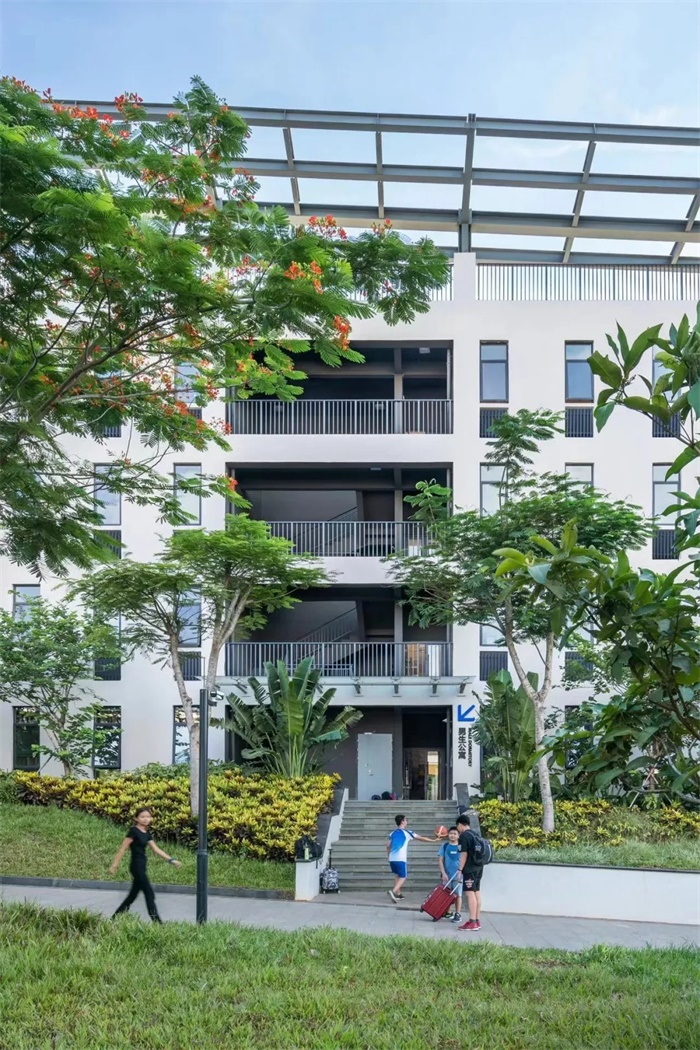 校园整体设计秉持对自然的尊重,融合了热带建筑概念,考虑了遮阳、空气流通、通风、建筑朝向和开口等因素。校园还融入了绿色设计策略和技术,如太阳能和再生水系统,以有效减少能耗,特别是在冷却方面。