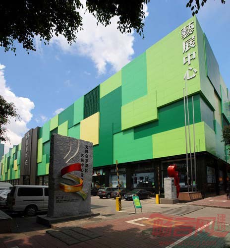 在最初的四个设计方案构想中,每一个都极富创意,而“魔方”最终为业主青睐,是因为它简洁、大方,有极强的视觉识别和推广意义。“绿色”代表生命、代表活力,在周边灰色建筑群中,它优雅的艺术气质充分体现出艺展中心的艺术魅力,作为全国知名的家居配饰中心,这种气质又为未来全国的连锁的企业VI 做了良好的铺垫。