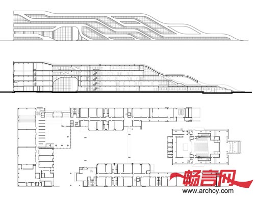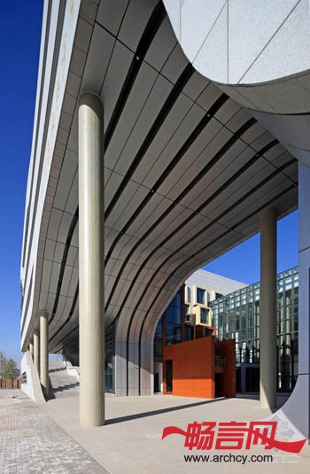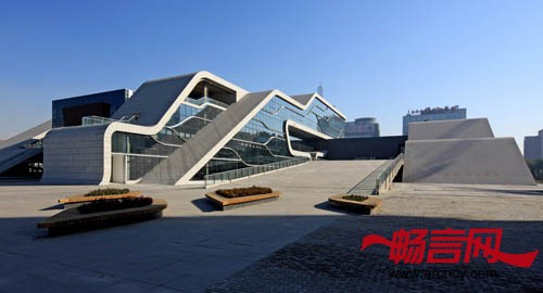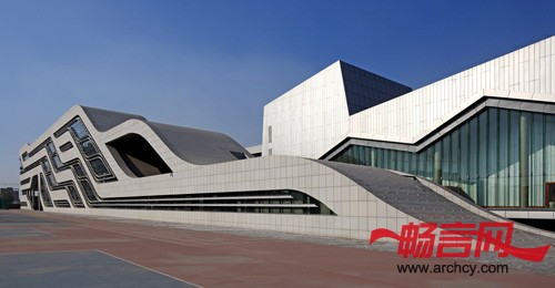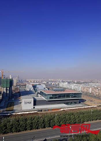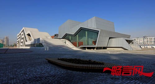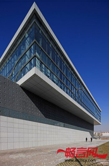 建筑柔软的屋面以草原丘坡的状态自然延续到广场