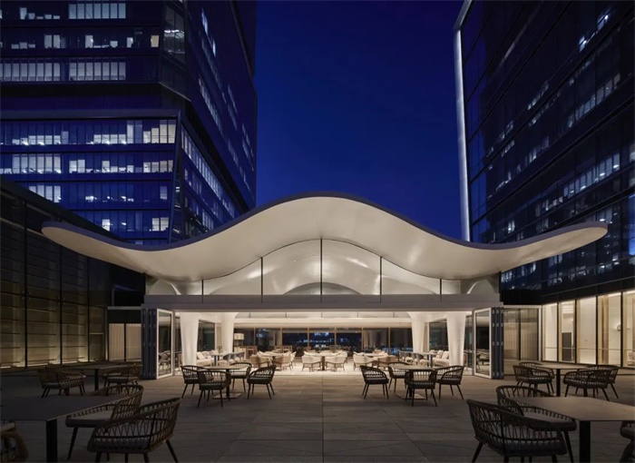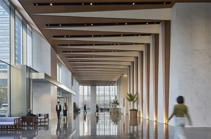 多个广场和屋顶露台为邻近居民提供可达性绿色空间,利用本地植被、水景和被动冷却策略。塔楼立面包括可操作的通风系统,裙楼立面包含水平木质遮阳设施。预测的能源使用量比ASHREA90.1-2010的基线少9%。