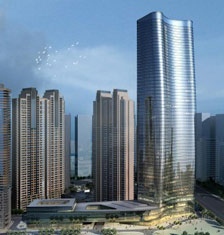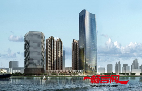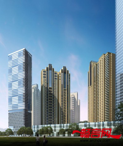 西侧带状用地结合湘江大道布置办公、公寓及商业等公共建筑和城市开放空间,东侧用地则集中布置住宅。整个项目采用现代与新古典相结合的建筑风格特征,强调整体建筑群的高端品质与灵活多样性。充分关注建筑的细节材料和色彩组合,暖色调的石材,配以轻盈金属面板、琢石和玻璃幕,形成明快亲切的细部处理。大胆的运用了立面构成的构图技巧赋予建筑物时代的印记。