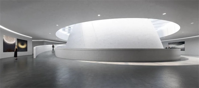 室内坡道衔接不同标高的功能空间,观览路径如同一缕飘带在三个竹笋之间穿梭舞动。基于观众动态体验的空间组织创造一个借鉴传统园林的起承转合空间序列。结合数字巨幕的穹顶步道空间作为一个屋顶城市舞台,为观众提供穿越虚拟数字艺术和实体城市风光的全新体验。