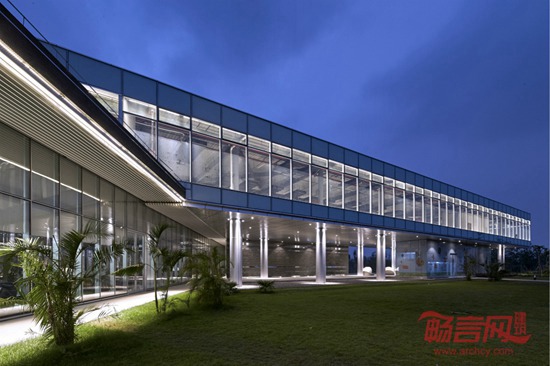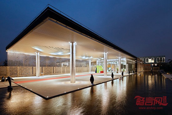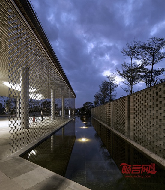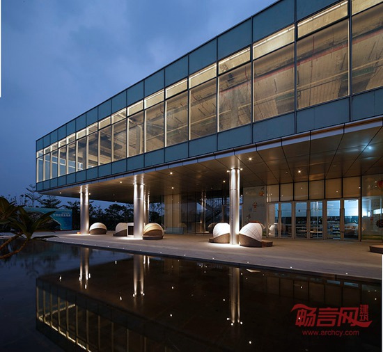 如何最大化利用优质的景观资源正是这个项目的突破点。我们将建筑主要功能空间呈四条线性空间交叉排布,每条建筑长边均对主要景观面。且采用超白高透玻璃,在展示中心内部穿行的时,随着视线角度的转变,室外的景观也时刻在变换。