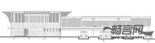 这座站房给人的第一印象来自坡屋顶的优美曲线——“波浪”的形象被引入到屋顶设计之中。这一具象化的设计并非标志化的简单复刻,本案高明之处在于建筑形体的具象标识与适应当地气候的技术逻辑紧密结合。由于三亚地处热点,纬度低,全年大部分时间太阳高度角较高,屋顶的轮廓线是根据太阳角度来确定的,屋檐的出挑长度随着建筑立面高低而变化——入口处最大,曲线中点处最小;除了减少首层阳光直射,屋顶挑檐还能遮蔽竖向的玻璃幕墙,从而降低建筑内部的制冷负荷。