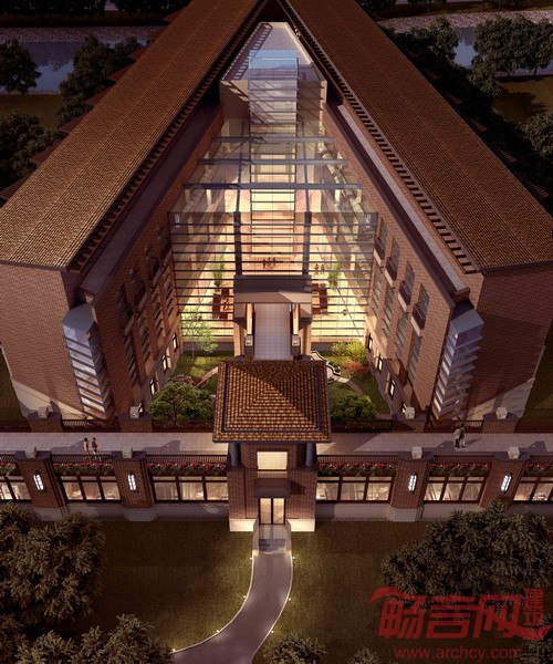 当今世界越来越被不断更新的高科技所统治,人们需要的不是什么新的复杂形式,而是质量的提高,这种生活质量的新概念对建筑师而言,是“减少、祛除、转移”。外立面设计可以提炼为“西式肌理,中国风骨”的概念。整体的比例构成样式均吸收了美国“草原式”有机建筑的经典建筑语汇---平缓的坡屋顶,幽远的出檐,水平的线条。材料的选择上充分尊重当地的地域文化并将中式传统建筑语言加以提炼,选择具有明显中国气息的手工仿古面砖做主要的外装材料,在基座部位用干挂石材勾勒出精致耐看的细部,屋顶檐口部位采用灰色的金属封檐板,屋面瓦则采用具有中国皇家建筑韵味的红中带黄的波形瓦。整体给人以温暖惬意又不失庄重的建筑感觉。
