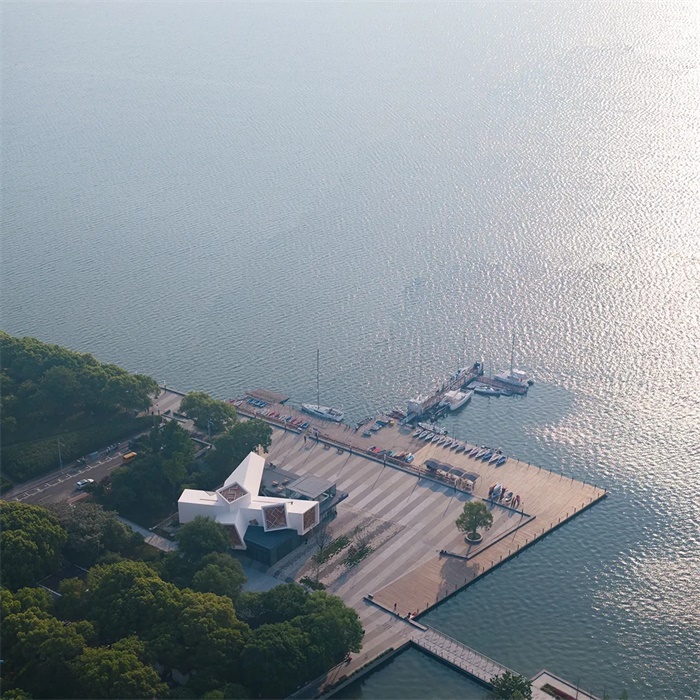 风之园驿站作为本项目为环金鸡湖15个休闲驿站中6个新建驿站之一,位于金鸡湖西侧风之园码头旁,作为结合风之园码头的综合服务性建筑,是该区域的重要服务配套设施,为环湖游客提供休憩的场所,也为码头举行的水上运动提供服务。