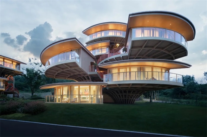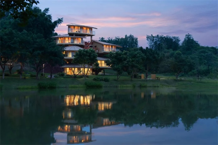 南溪欢乐田园野趣酒店树屋位于宜宾市南溪区。对设计机构来说这个树屋是树屋产品的2.0版,其1.0版是2019年建成的杭州开元森泊度假酒店树屋。湘湖树屋在文旅市场获得了热烈的反响,在短时间内便回收建设成本并持续盈利。
