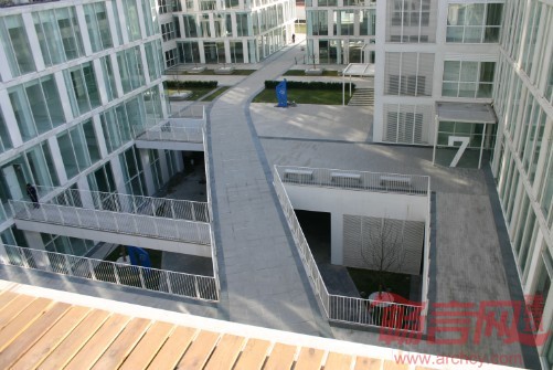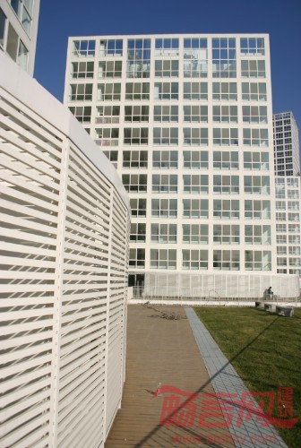 西侧是建外SOHO的后花园,花园是在市政府的绿色CBD的指导思想下,重新规划出来的,虽然开发商损失了很多建设用地,但却提高了社区的环境品质,花园就像社区的一片肺叶,向工作在建外SOHO的人们提供了一个创新的动力。