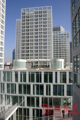 南侧是建外SOHO的河景边,通惠河沿社区南面流过,河与社区之间布置了