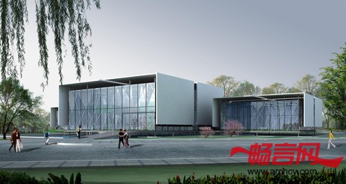 本方案力求体现整个楼盘 “林与城”的项目主题。建筑由五个正 方形盒子组成,共同构筑出一个“林中 有城”,“城中有林”的格局。整个建筑坐落在一个方形的水池上,下部悬空,漂浮的折板从屋顶挂下,犹如烟雨朦朦中的江南水榭。水池中荷花摇曳,波光中的倒影衬托着建筑的雅逸与空灵。