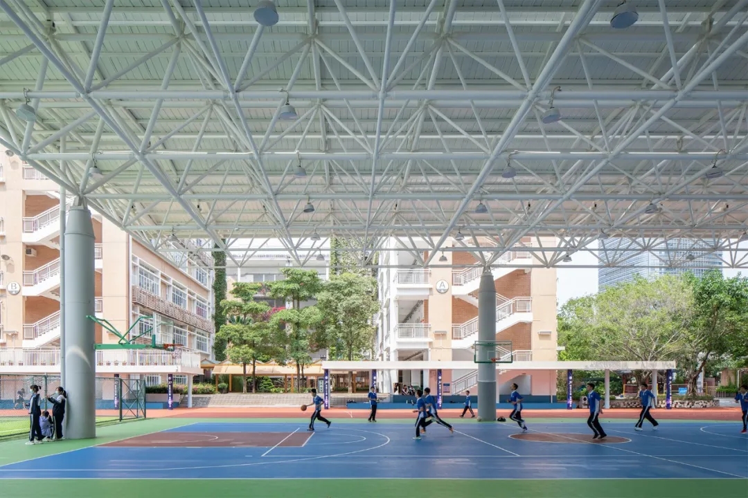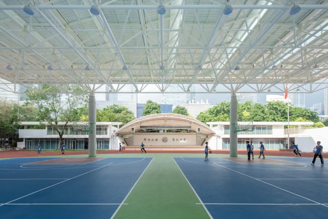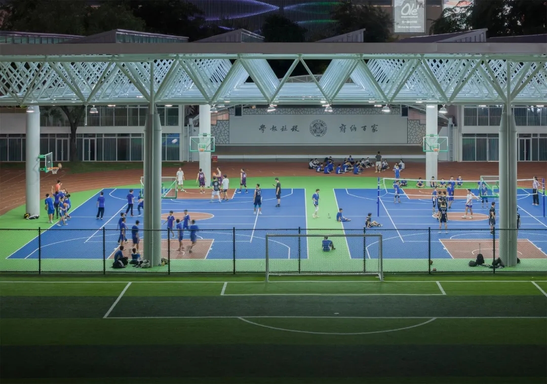 以上的动作诞生了一个新类型的操场,操场的另一种身份开始被关注和塑造:高密度校园里的户外空间,它在被围合和遮蔽后,将承载这个校园的公共生活。