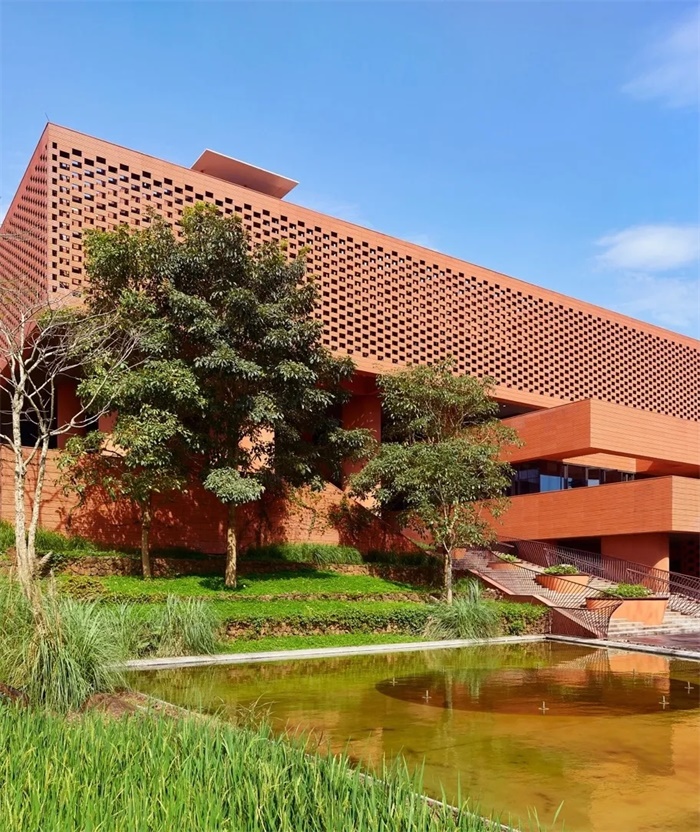 在甲方的支持下,材质也是陶土的板材。因为我们要做一个建筑景观一体化的试验,当周围景观被茂密的自然植被覆盖的时候,建筑这种人工物,反而代表了裸露出来的红土地。这样的一种反转,实际上是在思考人工-自然的关联。