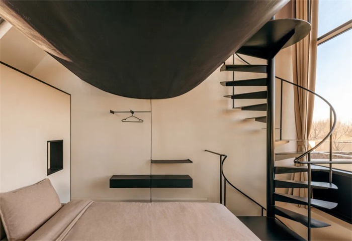 如果说砖房子是乡土的日常,那么纯粹且统一的几何形式与淡黄色调则示意着这个房子与其他乡居的差异。如果说乡间旅店是短暂逃离城市而眠的日常,那么为居住这一行为附加更多意识和感知的“郊野主题乐园”,则是时髦版居住体验的夸张与放大。甲方曾提出希望打造一座网红酒店。在我们看来,一切日常与反常的设计手法之下,唯有16:30的阳光始终连接着客人的世俗需求和心愿梦境,它不仅是打卡拍照最好的滤镜,也可能是成为网红的魔法,一座接住光线和草木的城堡。