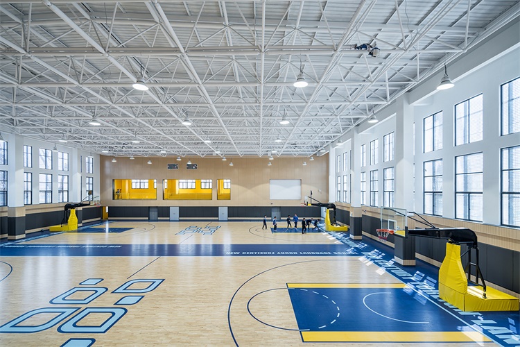 国际学术交流中心包含了教师办公、教育培训以及少量餐饮空间,建筑高度达45米;风雨操场可容纳两个标准篮球场,丰富学校的体育运动功能。将国际化与本土化所需要的教学空间有机结合。
